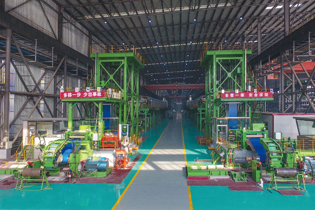 1500m/min酸洗冷軋聯(lián)合機(jī)組一套,應(yīng)用了多項當(dāng)今領(lǐng)先技術(shù),集激光焊機(jī)、拉矯破鱗機(jī)、淺槽紊流酸洗設(shè)備、高精度雙塔式切邊設(shè)備、激光測速儀
