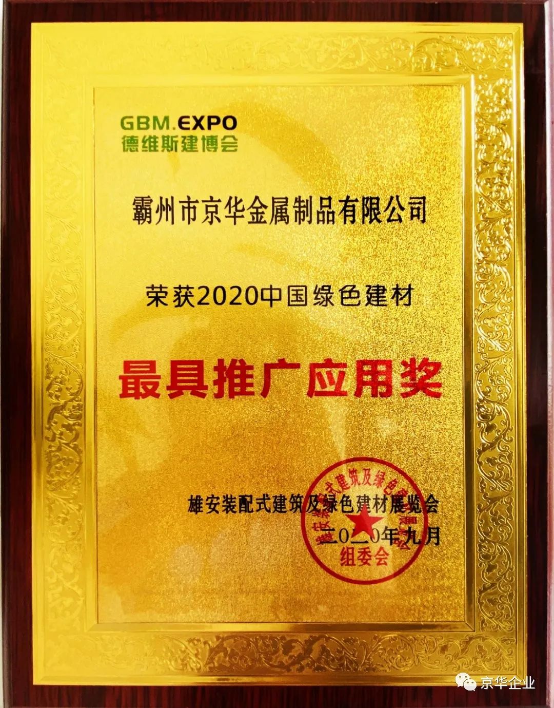 雄安德維斯建博會(huì)作為雄安新區(qū)的標(biāo)桿性展會(huì),會(huì)上,京華企業(yè)以卓越的產(chǎn)品質(zhì)量和先進(jìn)的生產(chǎn)技術(shù)以及標(biāo)準(zhǔn)化的銷售服務(wù)榮獲2020中國(guó)綠色建材“最具推廣應(yīng)用獎(jiǎng)”。
