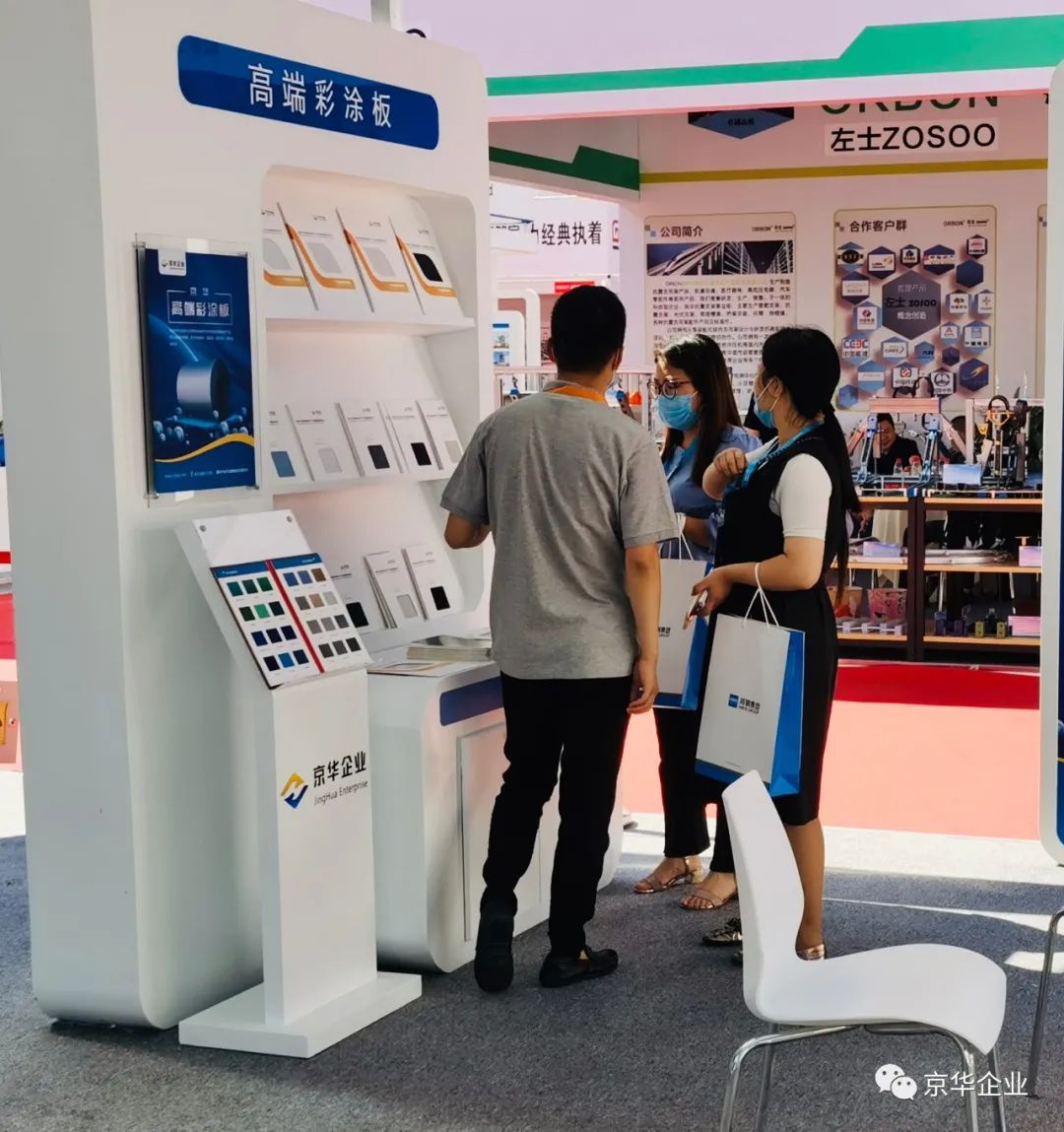 其中,產(chǎn)品展示區(qū)—京華企業(yè)旗下產(chǎn)品的京華彩涂板、京華精品彩涂板、京華高端彩涂板、熱鍍鋅板、高強(qiáng)鋼板等板材,憑借自身輕質(zhì)、美觀、防腐、抗菌、環(huán)保等優(yōu)質(zhì)屬性吸引了眾多參展者的駐足觀看和青睞。企業(yè)旗下的5大板材可廣泛應(yīng)用于基礎(chǔ)設(shè)施建設(shè)、交通工程、商業(yè)地產(chǎn)、工業(yè)建筑等領(lǐng)域,為大美雄安的建設(shè)保駕護(hù)航。