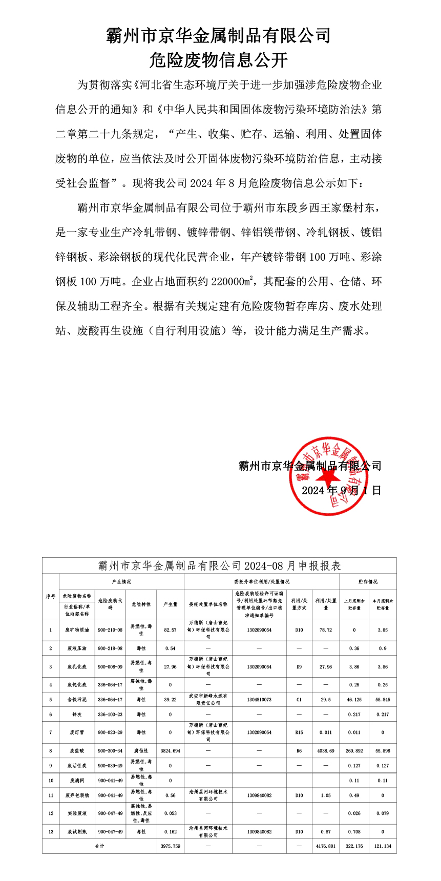 上一篇:24年7月危險(xiǎn)廢物信息公開-霸州市京華金屬制品有限公司
