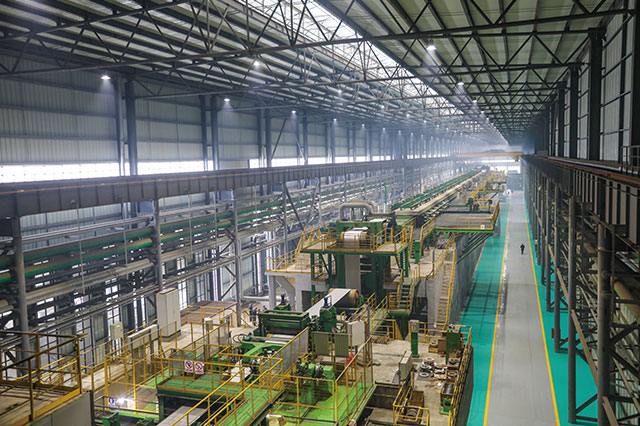 1500m/min酸洗冷軋聯(lián)合機(jī)組一套,應(yīng)用了多項當(dāng)今領(lǐng)先技術(shù),集激光焊機(jī)、拉矯破鱗機(jī)、淺槽紊流酸洗設(shè)備、高精度雙塔式切邊設(shè)備、激光測速儀